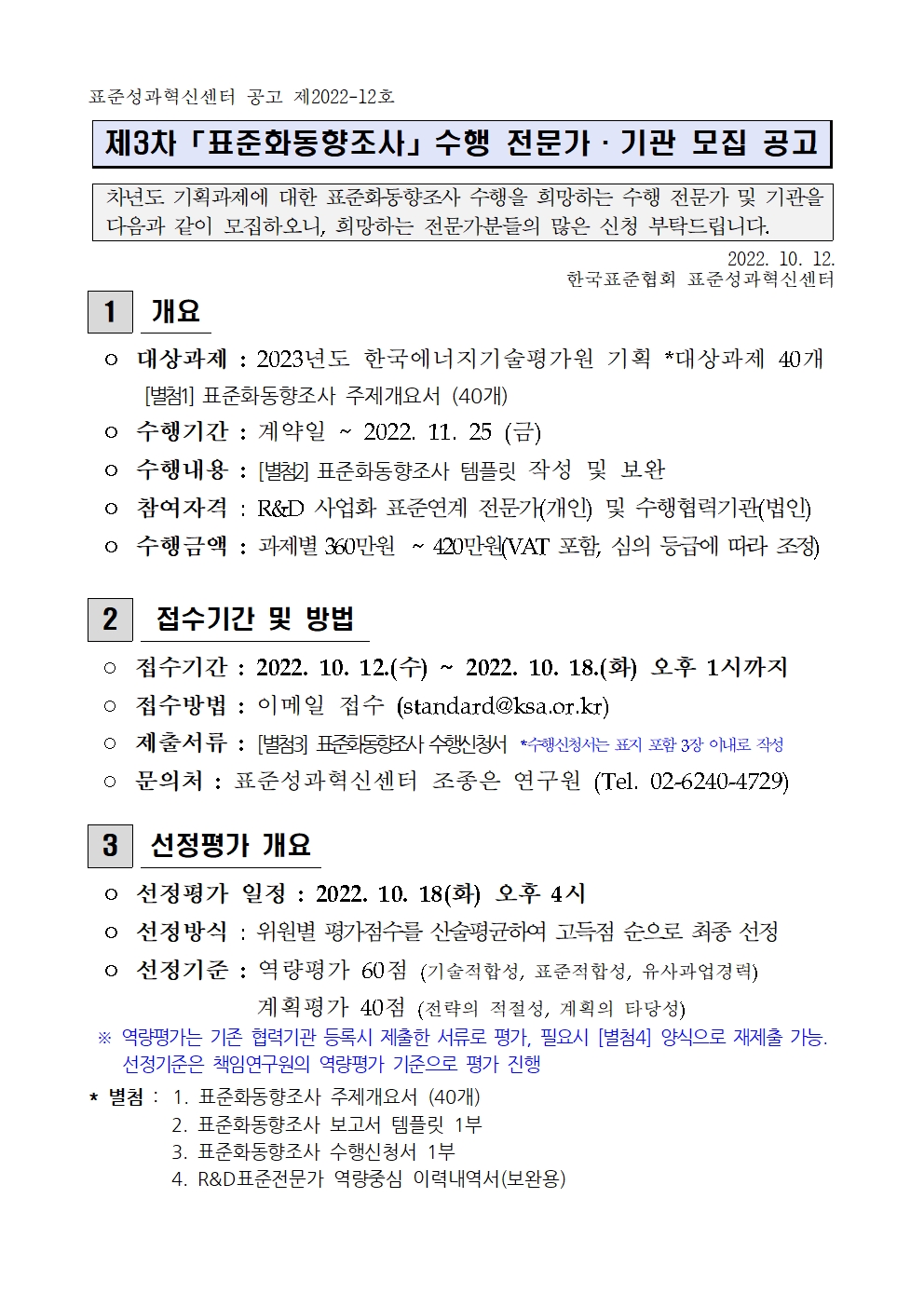 제3차 「표준화동향조사」 수행 전문가 모집 공고